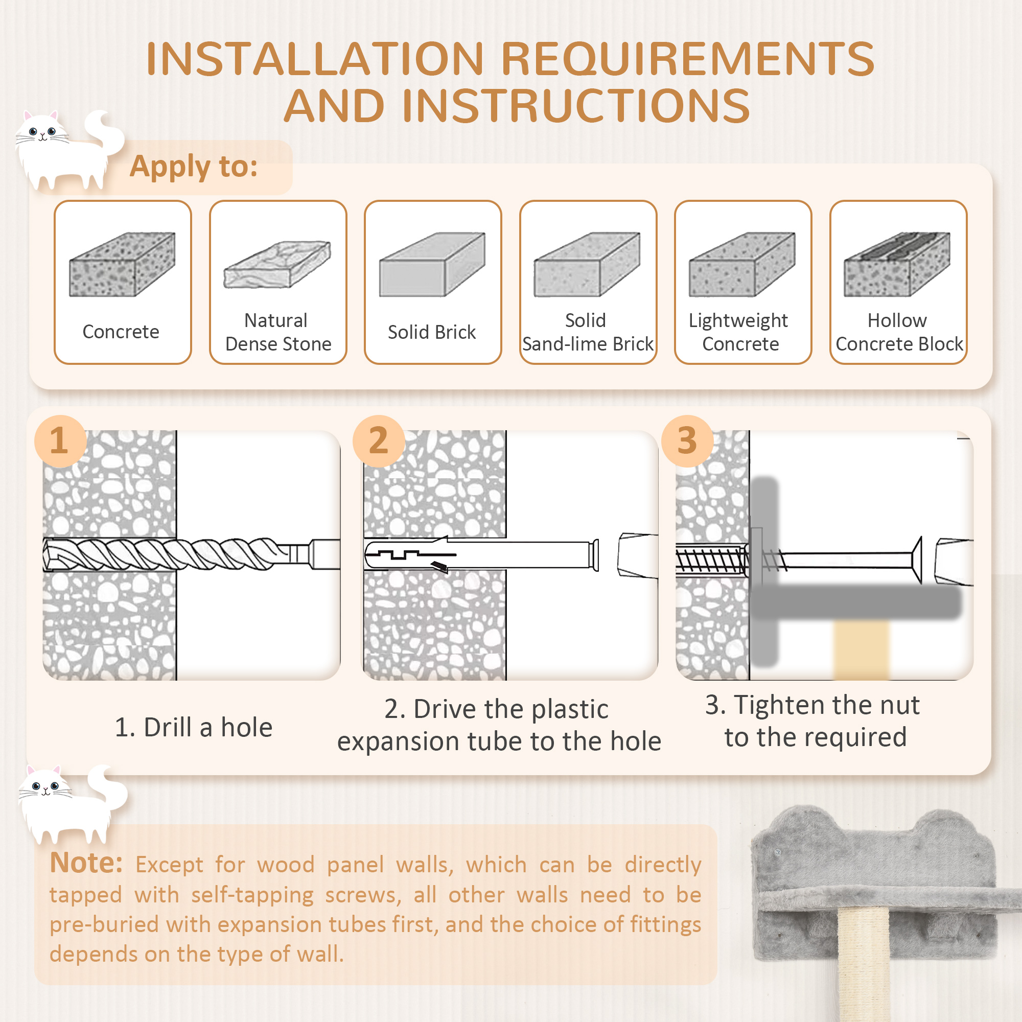 PawHut 5PCs Cat Wall Furniture With Perch, Cat House, Scratching Post
