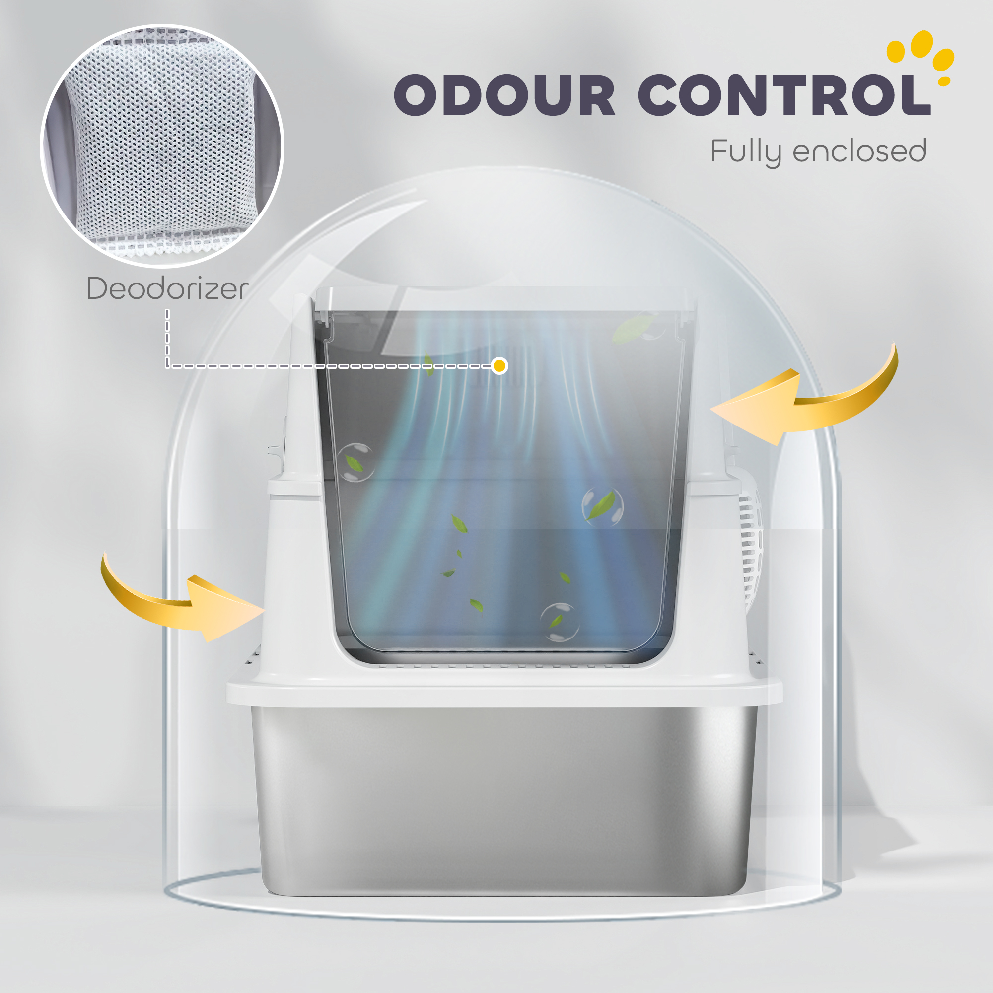 - A fully enclosed kitty litter box, it stops unwanted odours from spreading