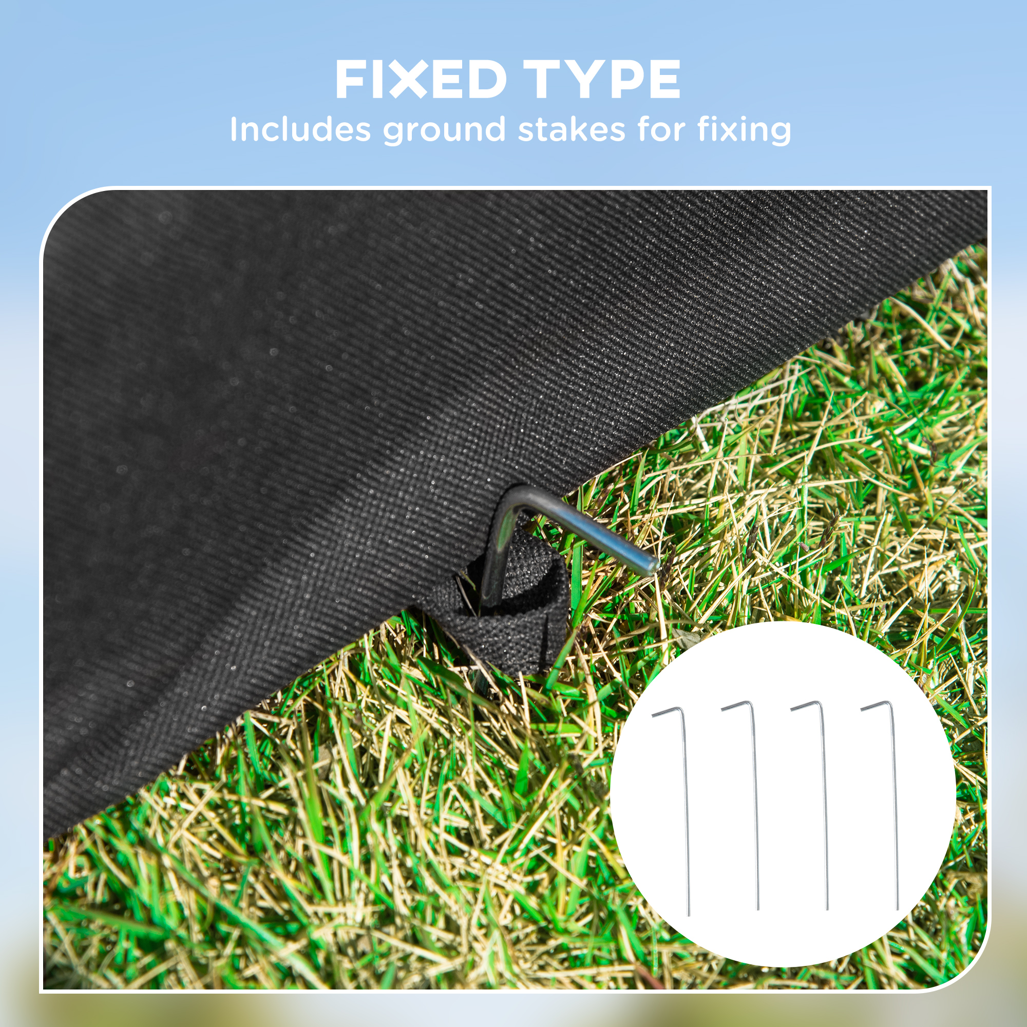 - Four ground stakes for stability