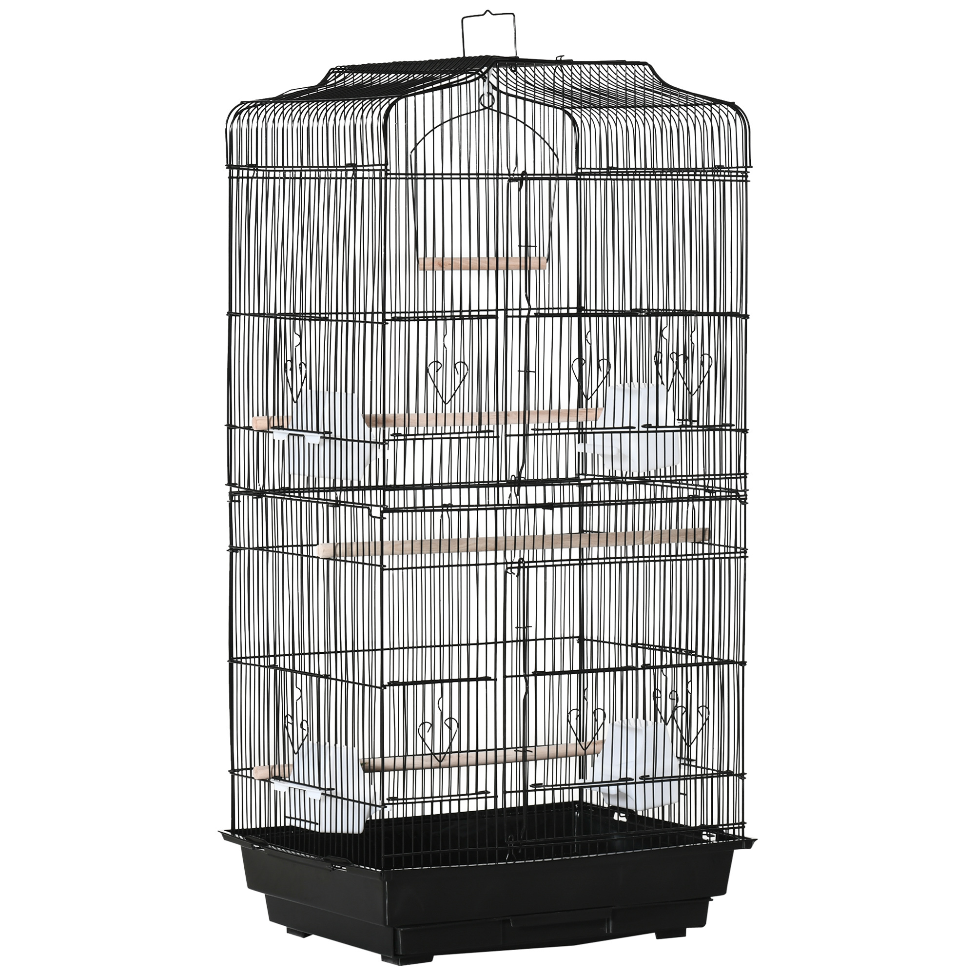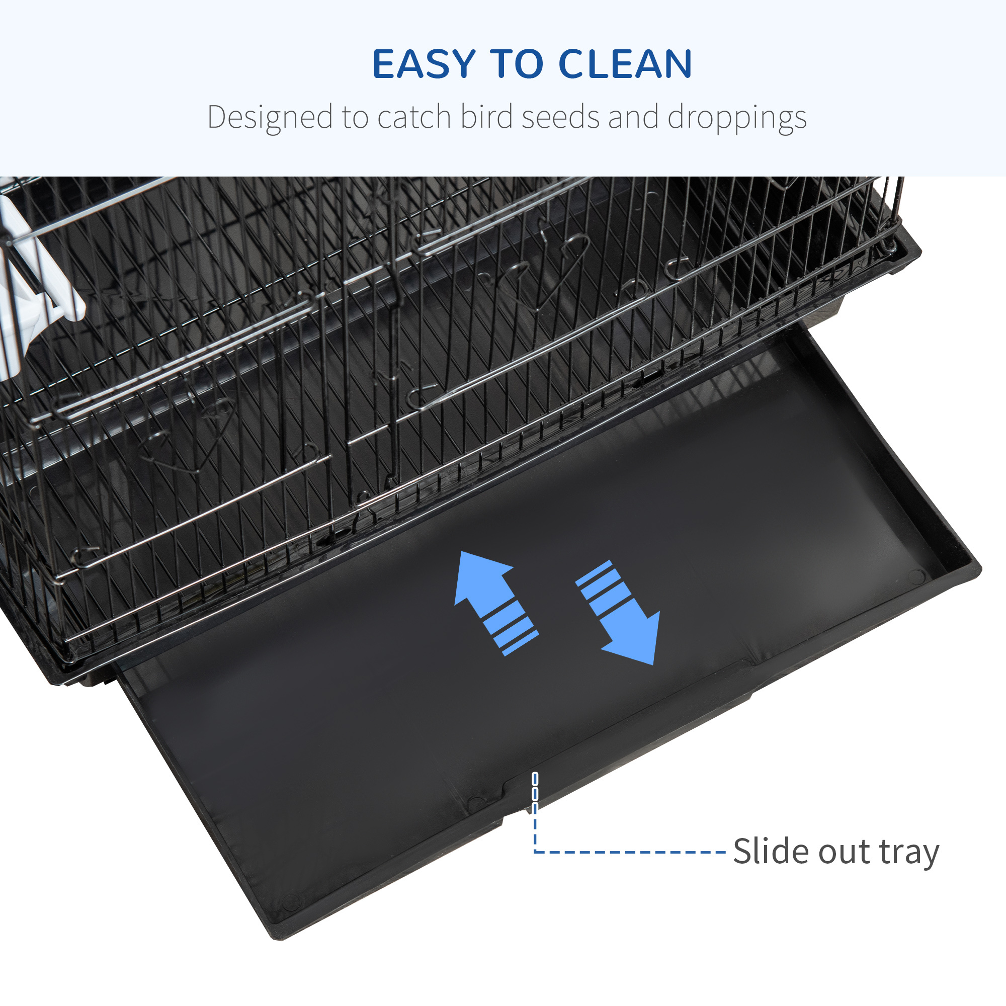 PawHut Large Metal Bird Cage With Stand, Perches, Food Bowls, Swing, For Budgies, Parakeets, Black