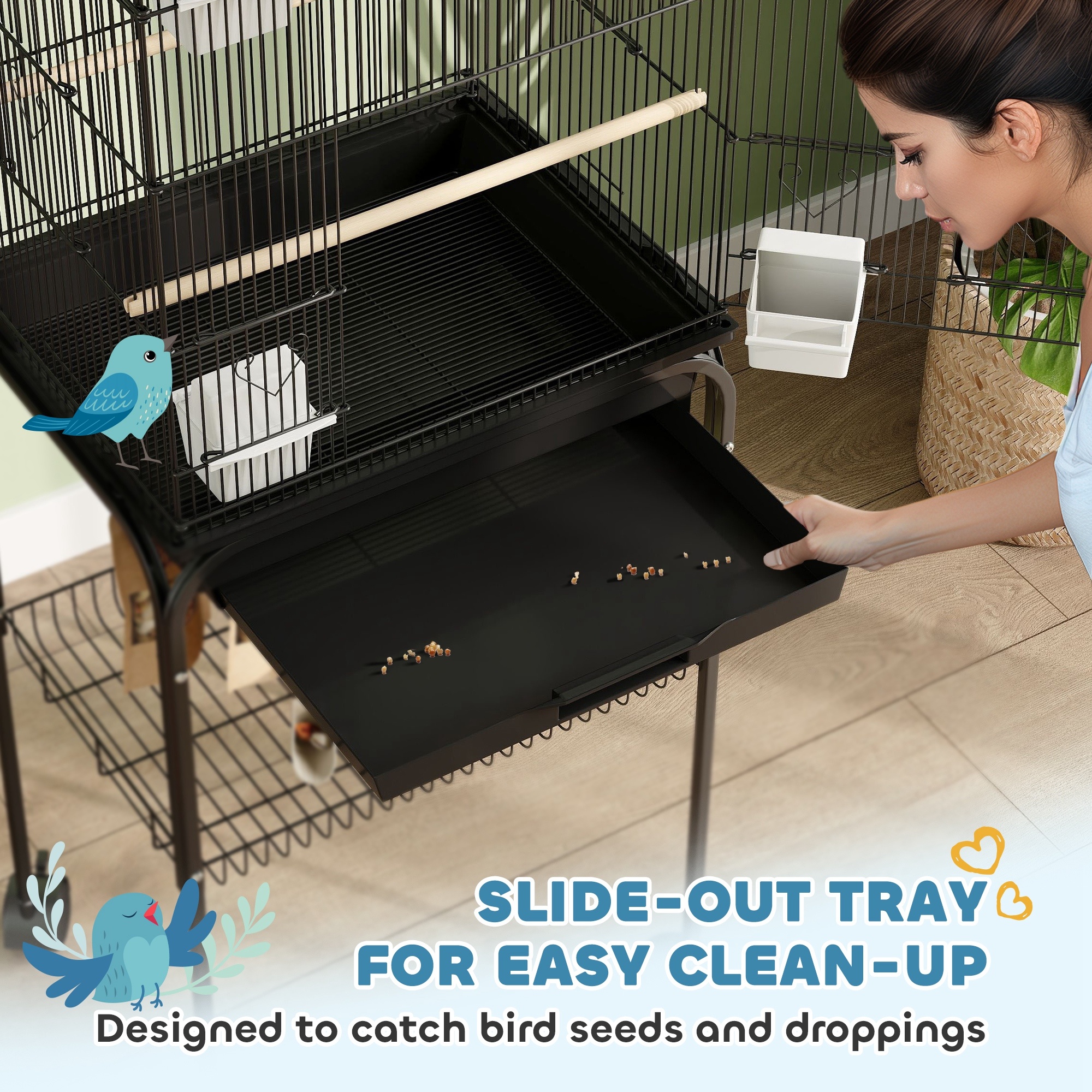 PawHut Metal Bird Cage With Plastic Swing, Perch, Food Container, Tray, Handle, For Finches, Canaries, Budgies, 43 X 32.5 X 163