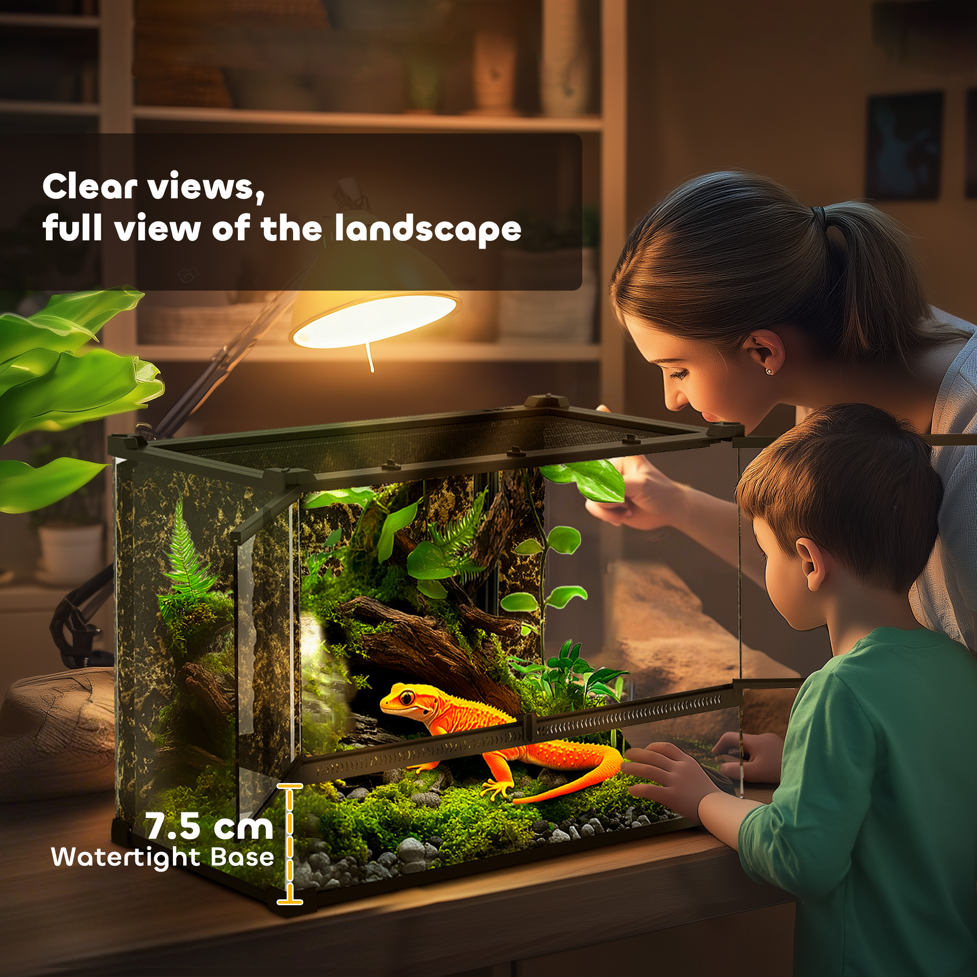 PawHut Reptile Glass Terrarium With Stone Background, Front Ventilation, Escape-Proof Knob Lock, 50 X 30 X 35 Cm, Black