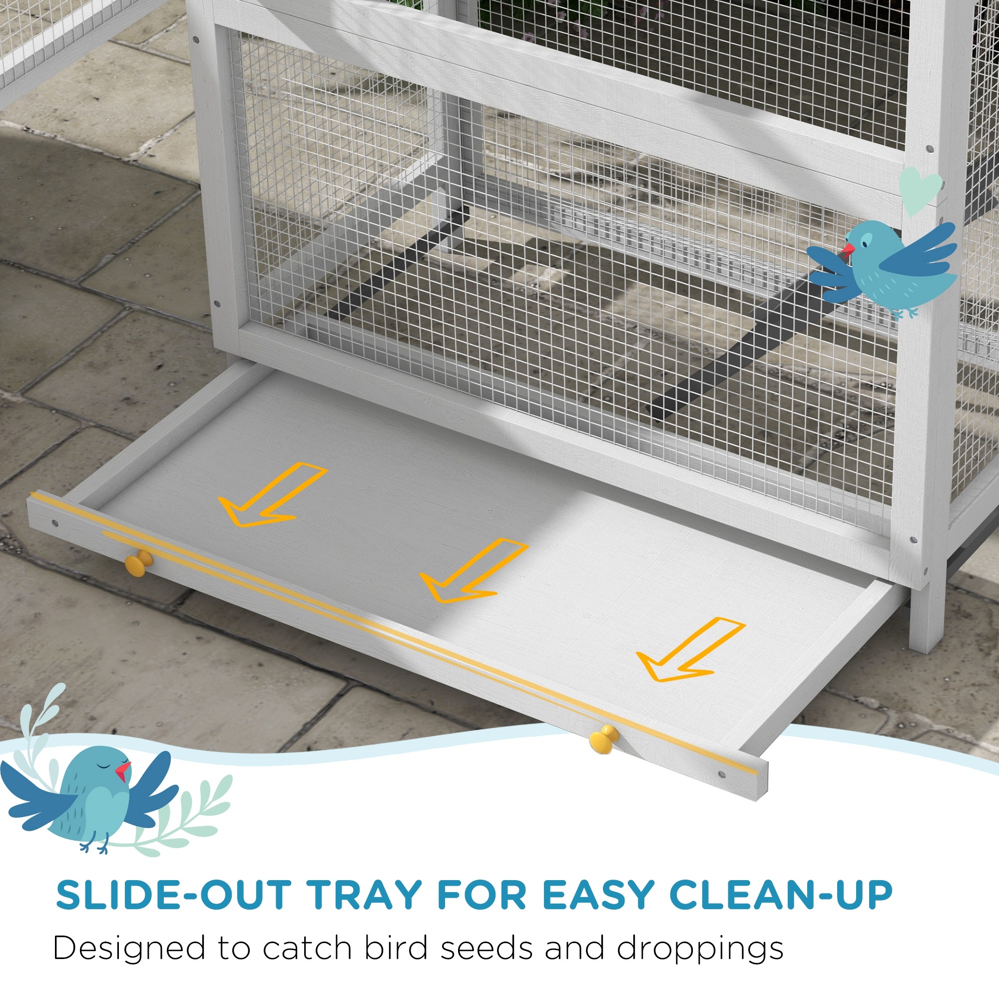 PawHut Wooden Bird Cage, With Stand, For Finches, Parakeets, Small Birds – Grey
