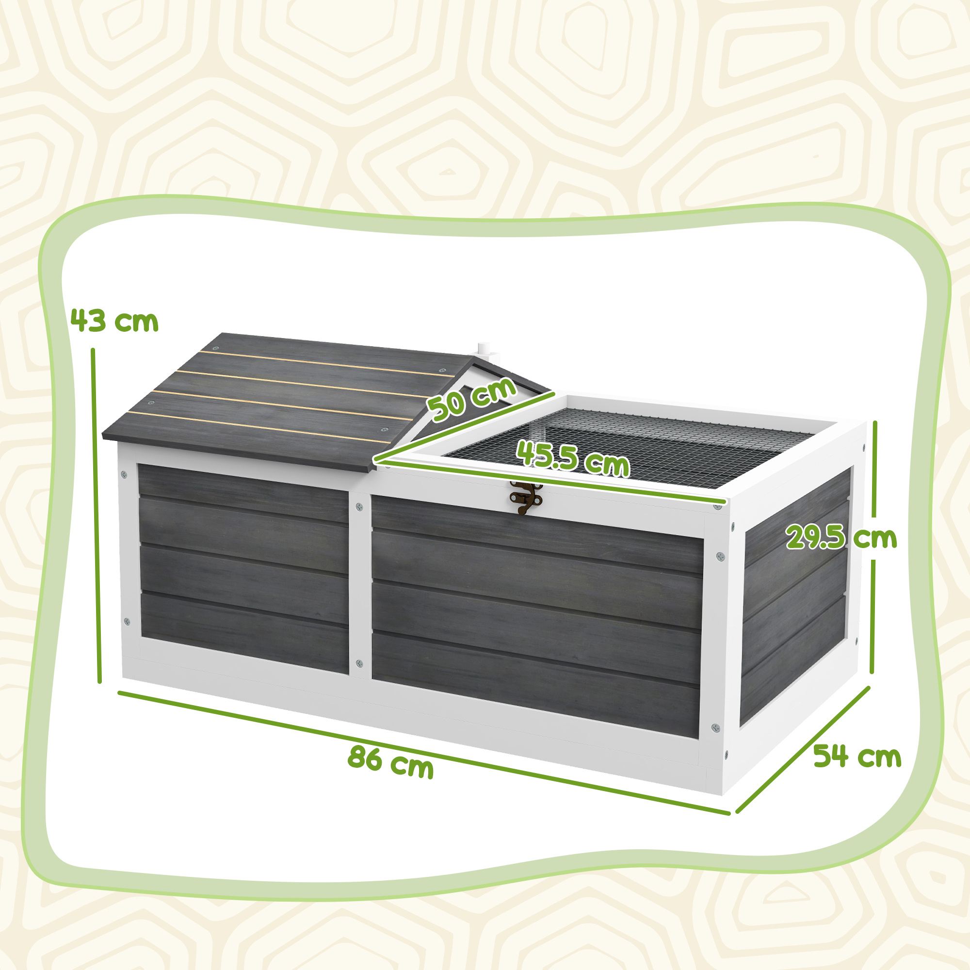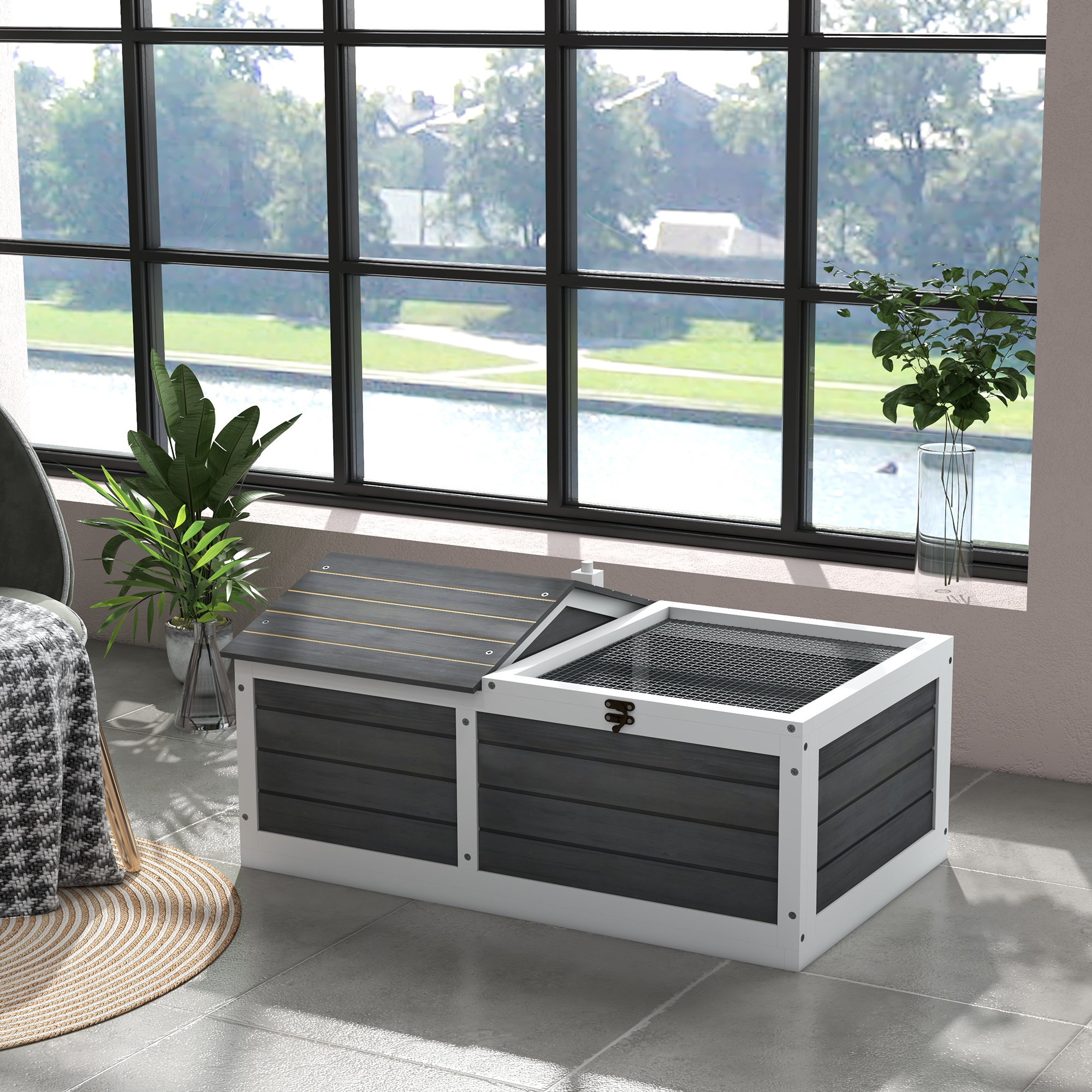 PawHut Wooden Tortoise House, Small Pet Reptile Shelter, With Hide Den And Run – Grey